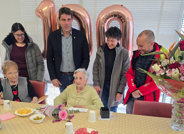 A més, va rebre la medalla centenària que atorga la Generalitat de Catalunya en homenatge a la trajectòria vital. L’alcalde de la Granada i una representant de la Generalitat van ser els encarregats de fer-li l’entrega.